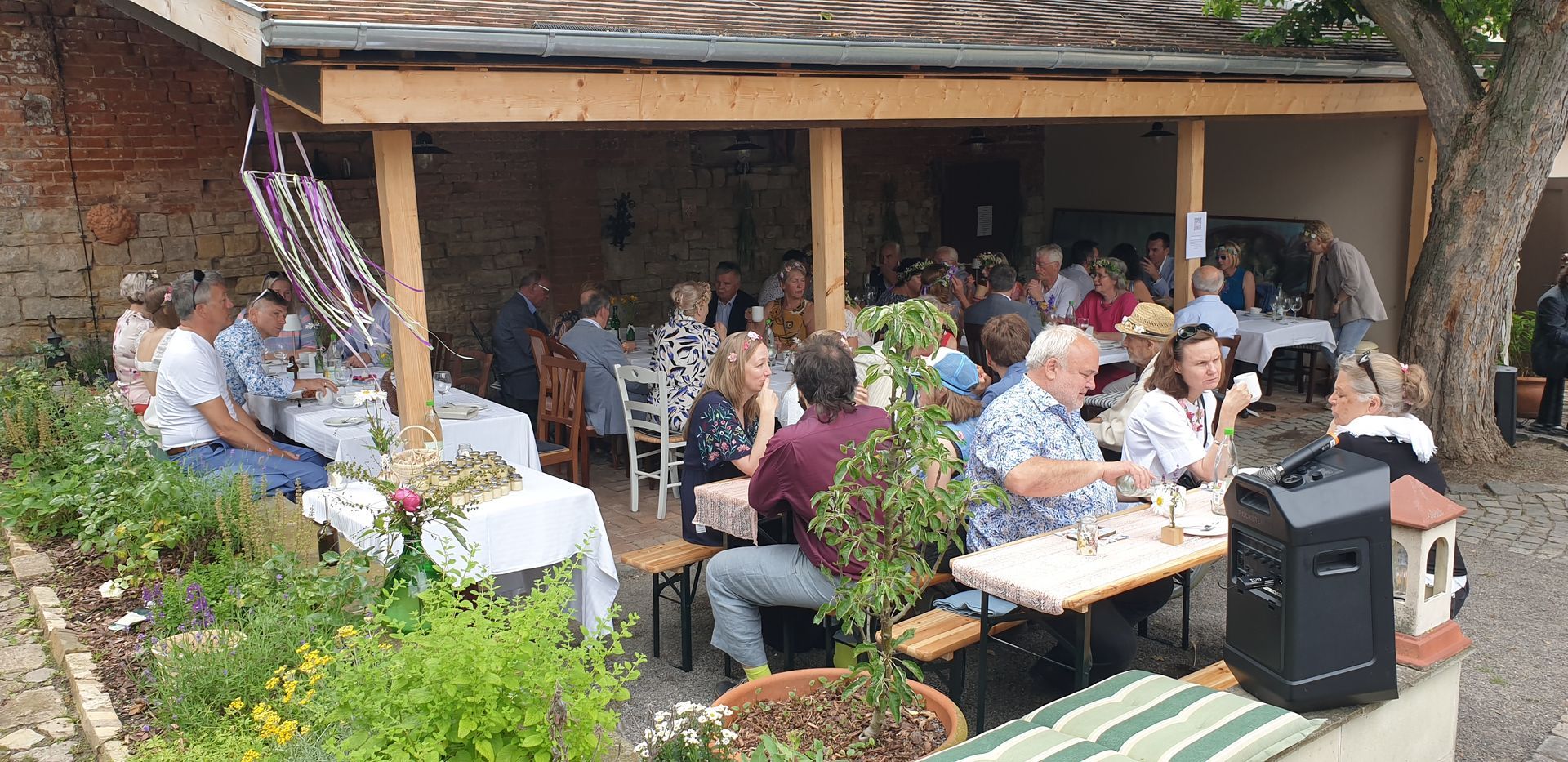 Stadtjubiläum in 2025, Mücheln wurde 675 Jahre alt und wir haben uns mit einem Stand anläßlich des Stadtfestes beteiligt. Wir durfen die Ehrengäste und Gesandten der Partnerstädte beherbergen.