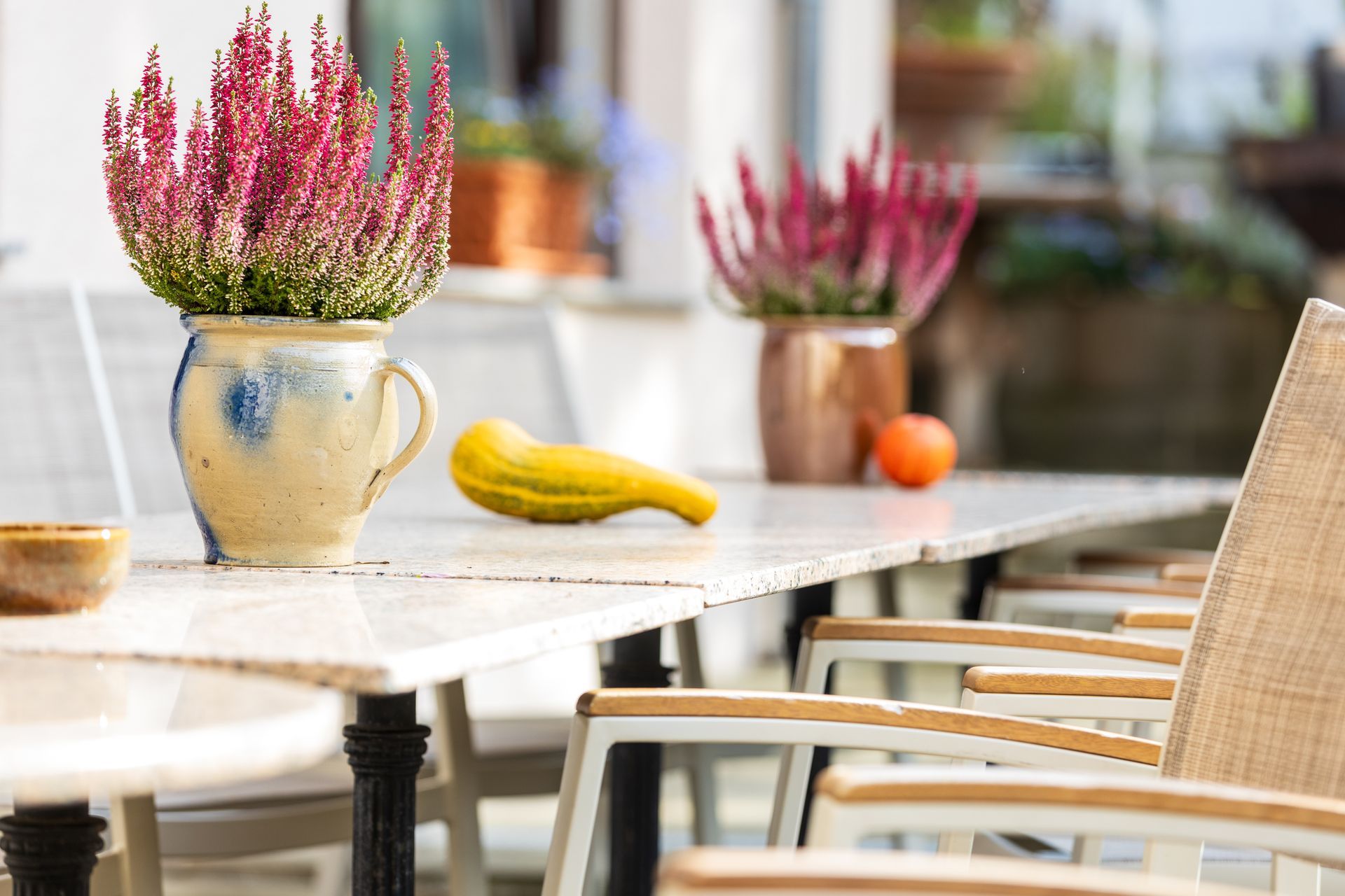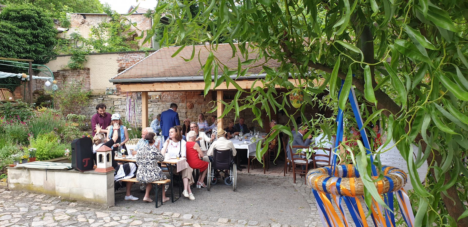 Wirtschaftsminister Sven Schulze hat auf seiner Fahrrad/ÖPNV-Sommertour 2021 und 2023 bei uns Station gemacht. Auf der Terrasse haben wir unsere Tafel gestellt und mit den Schirmen werden Sie vor Sonne und kurzen Regenschauern geschützt.