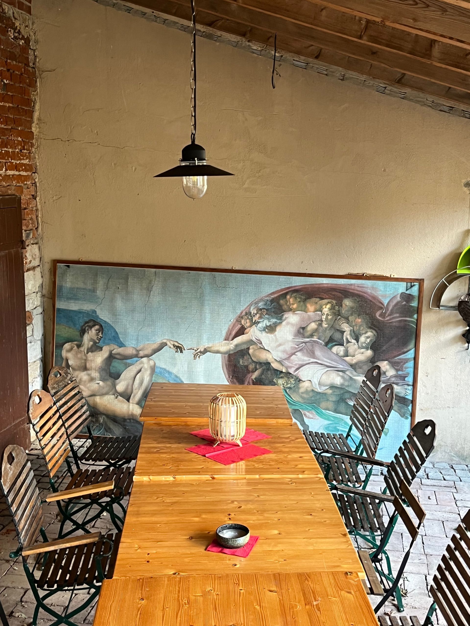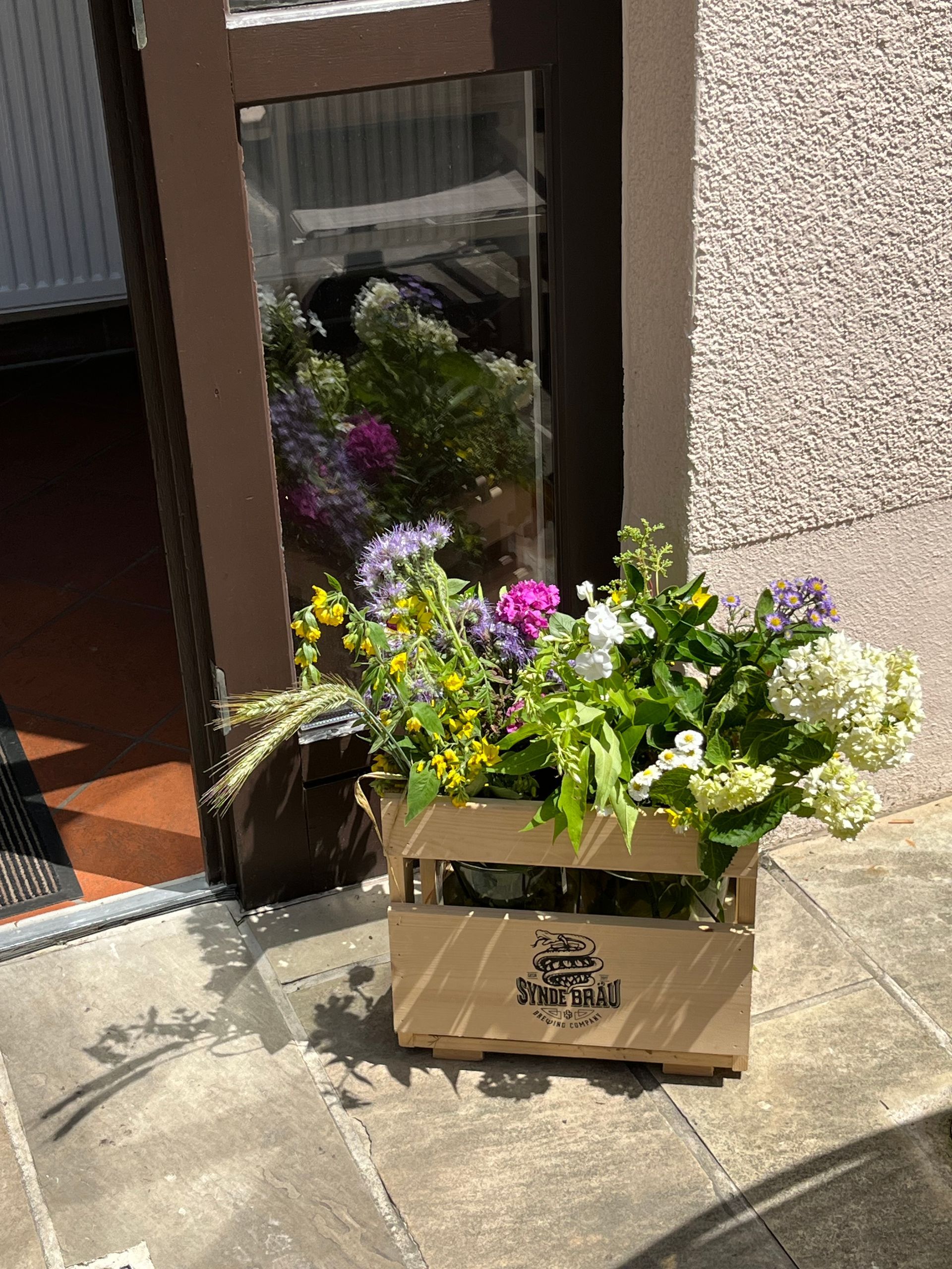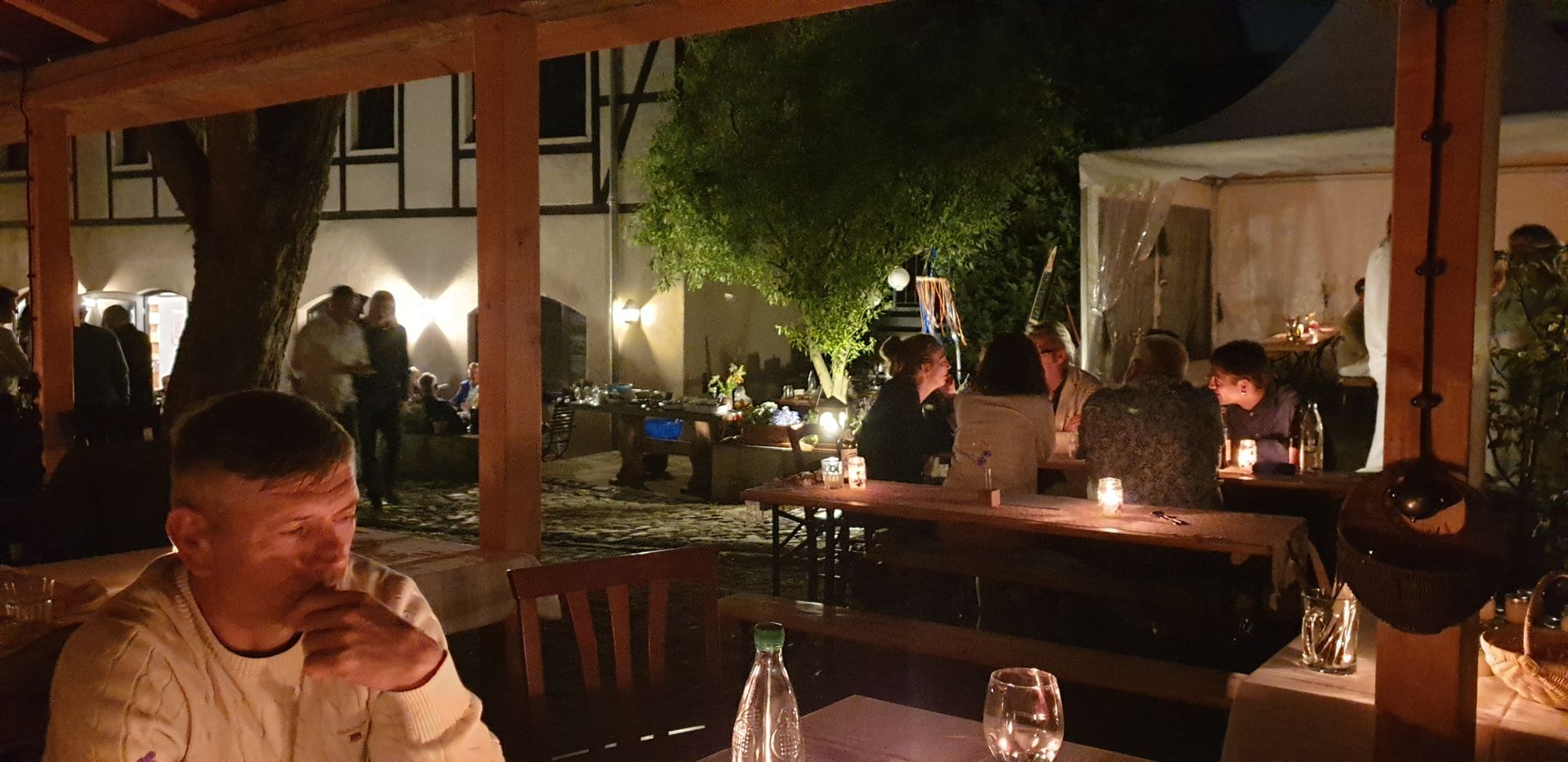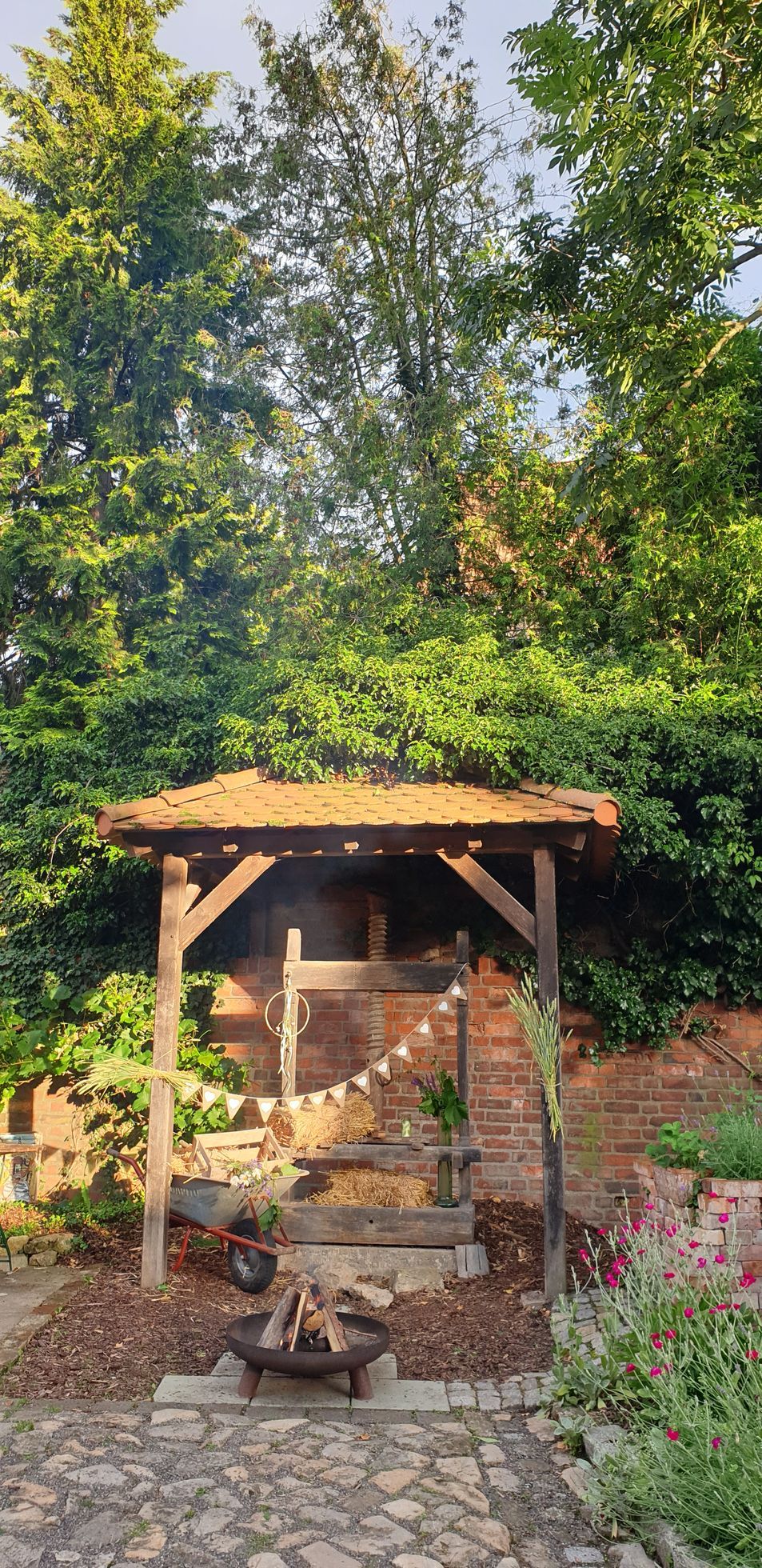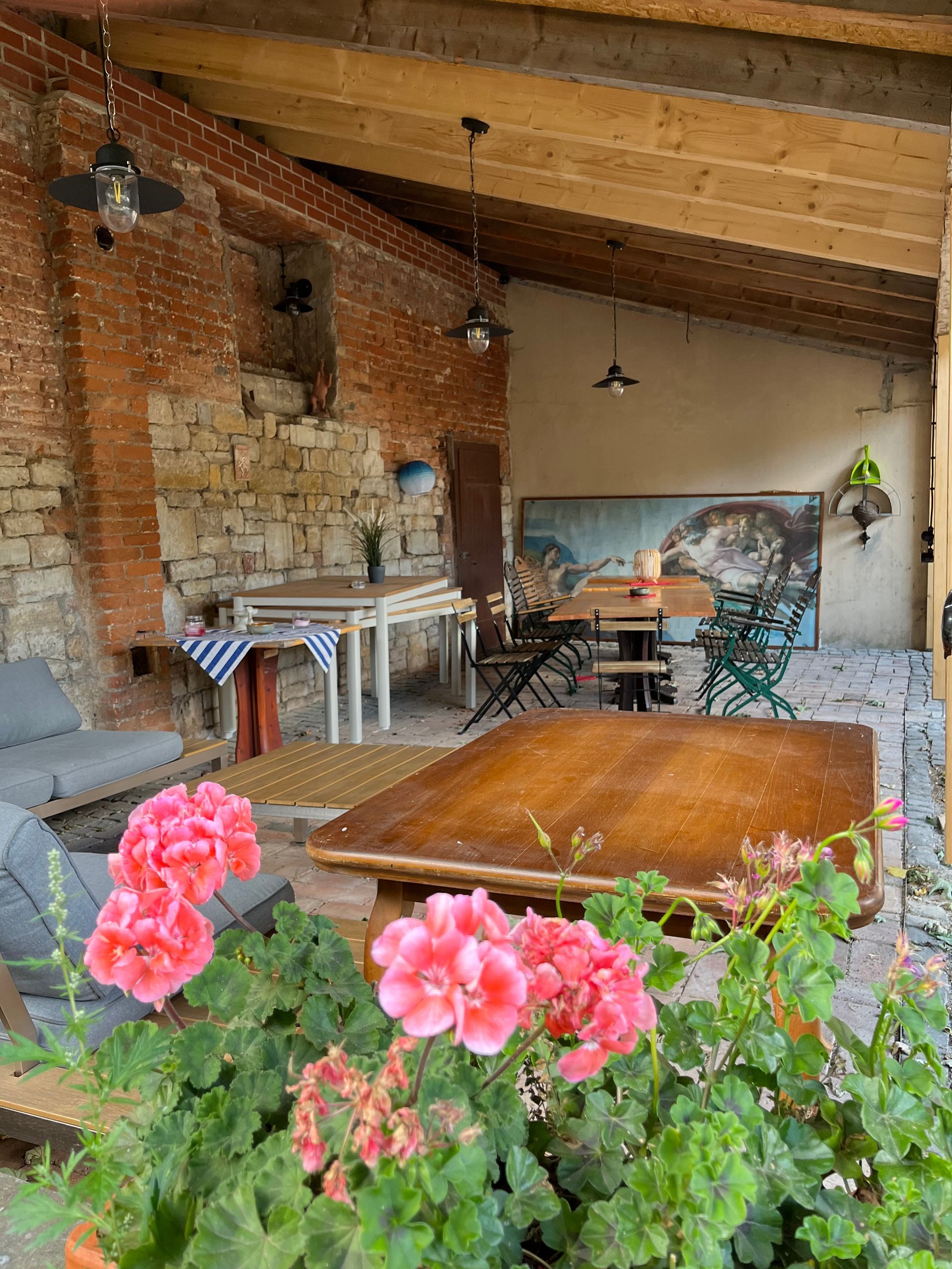 Unser Unterstand erstrahlt in neuem Licht und ist dicht. Sie können nun bei Wind und Wetter trocken sitzen und das direkt an einer alten Stadtmauer. Im Frühjahr haben wir die Fassade zum Innenhof erneuert und einige Holzarbeiten an Türen und Fenstern vollzogen.