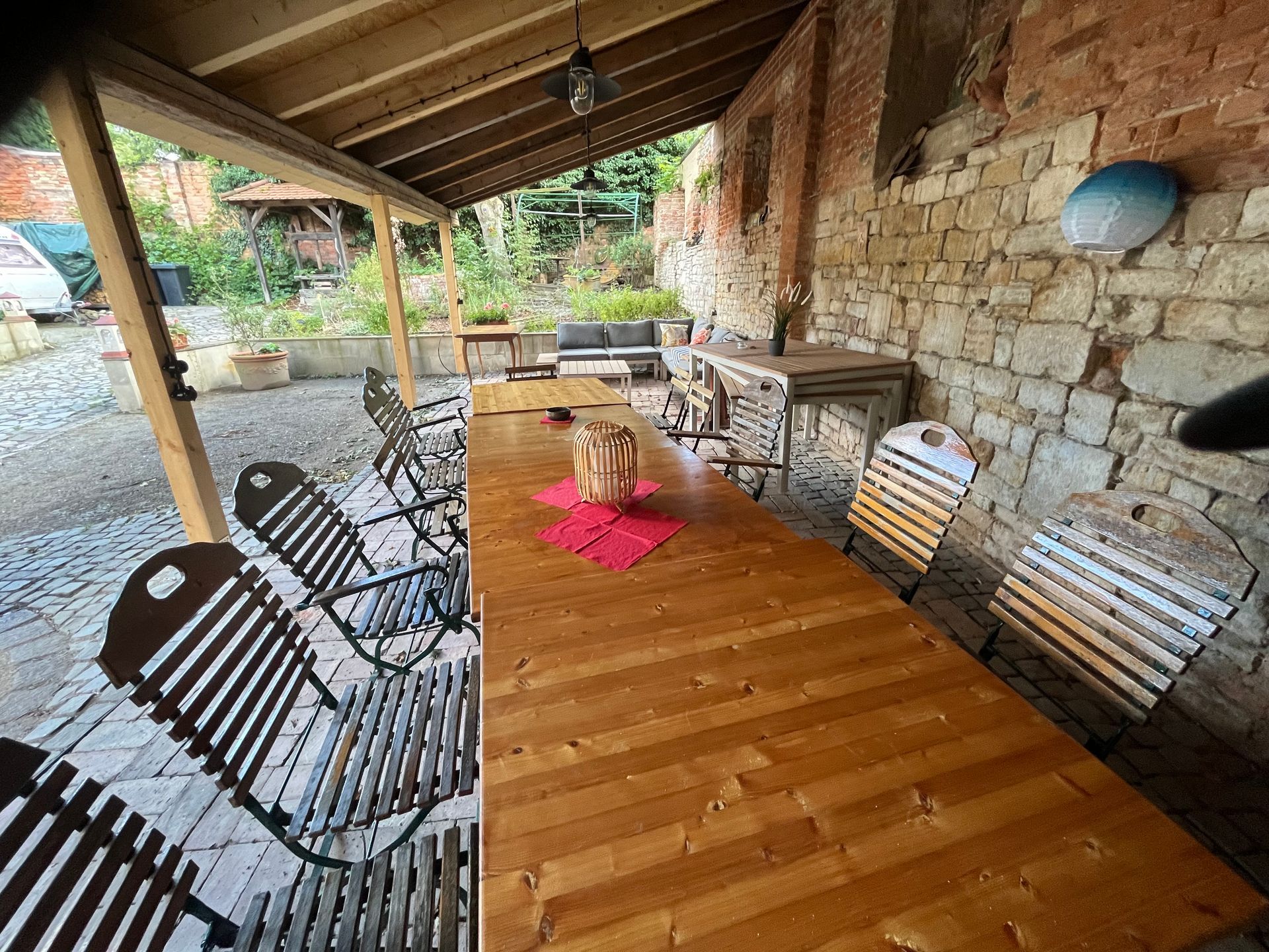 Neben den Familien- und Freundestreffen hat inzwischen auch einige Unternehmen und eine Unternehmensberatung hier getagt. Große wissenschaftliche Institute mit Gästen aus aller Welt und Zuschaltungen über Internetkonferenz und weitere institutionelle Gästegruppen haben das Haus bereits nutzen können. Die Uni Leipzig war mit internationalen Gästen, die Charité, die Hochschule Burg Giebichenstein und Sozialverbände waren auch schon zum Workshop hier. Im Herbst 2022 wurde das erste spirituelle Retreat mit 9 Teilnehmern durchgeführt, für Gruppen vermitteln wir den Kontakt.